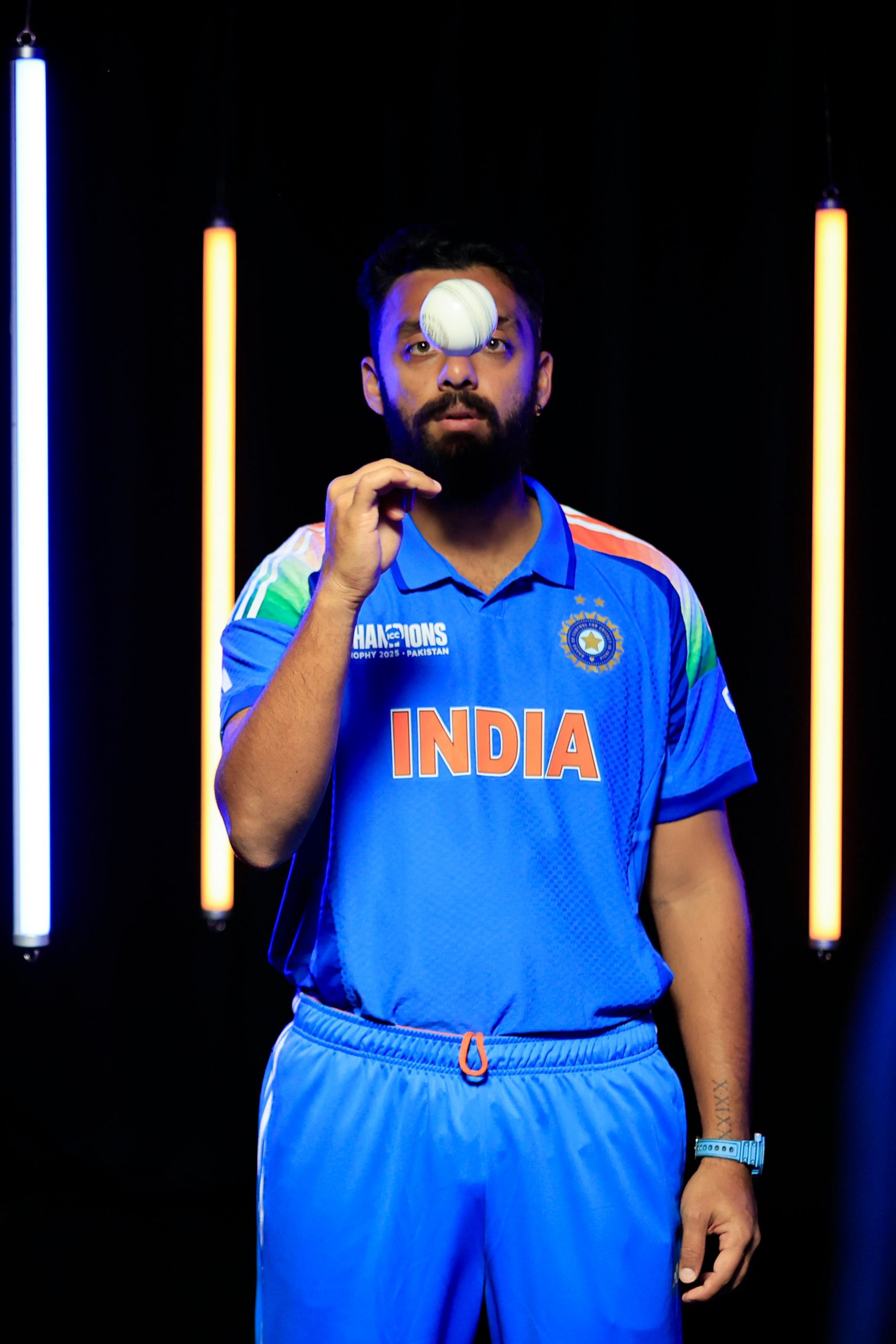 BCCI posted photos of Indian cricketers ssporting their new jerseys for the ICC Champions Trophy 2025.